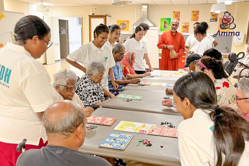 In old-age homes, including people with dementia, the gift is dignity and companionship. Birthdays and festivals become occasions to remind every person that they are visible, noticed, and loved. Most times, the seniors share, “You have become like our family,” and this feels as though Amma herself is connecting with the residents.