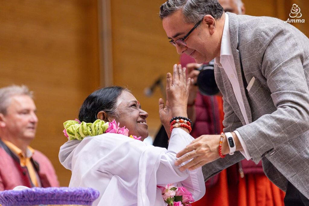 “Amma is not just a spiritual figure, she is a human force. Her message is one of welcome, love, and selfless action. People have all come together through a passion for Amma, a spirit of service, because her organization brings many activities for social development and helping the poor,” he said.
