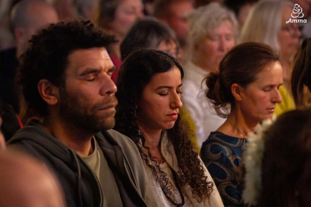 Throughout the three days, Amma led satsang, bhajans, a guided meditation, and Atma Puja for world peace, offering solace and strength to all who attended. She also sang a German bhajan, filling the hall with emotion as many sang along through tears.