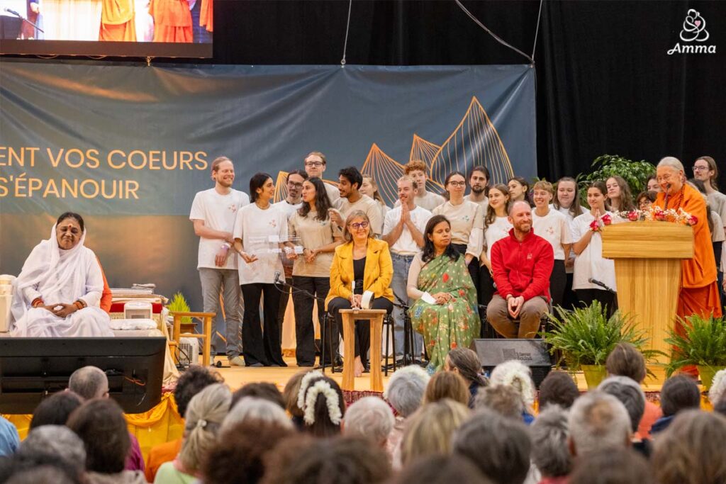From young people to senior citizens. From volunteers to government officials. From Europe to India to Africa. Amma’s three days in Chartres, France were a whirlwind of connecting citizens from diverse paths to build a more caring world. Still, all of it rested upon the foundation of Amma’s simple yet powerful solutions.