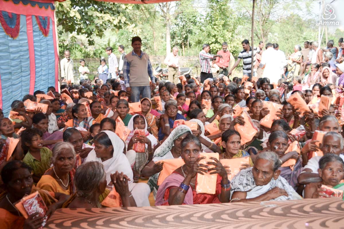 Just as suddenly, a clear image appeared in her mind. She saw Amma as a child in her poor fishing village helping neighbours and the other children in whatever way she could. With this scene illuminating her heart, Yashodhara went to the local market and bought 15 new saris to distribute to the elderly women in the village.