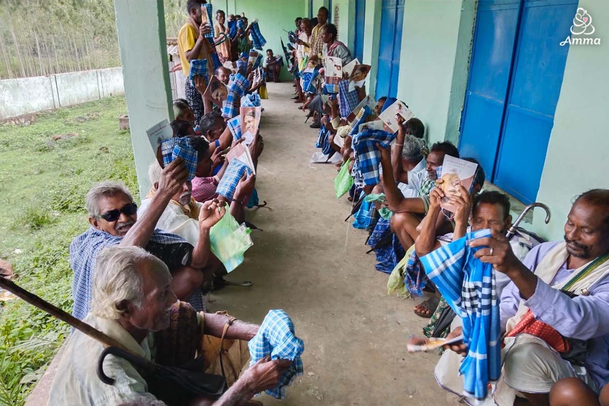 During major religious festivals, the volunteers would invite about 100 to 150 people for a cultural program in folk tradition. Then they would provide rudimentary health checkups, free medicines, a wholesome meal , and a gift of saris, dhotis, and blankets.